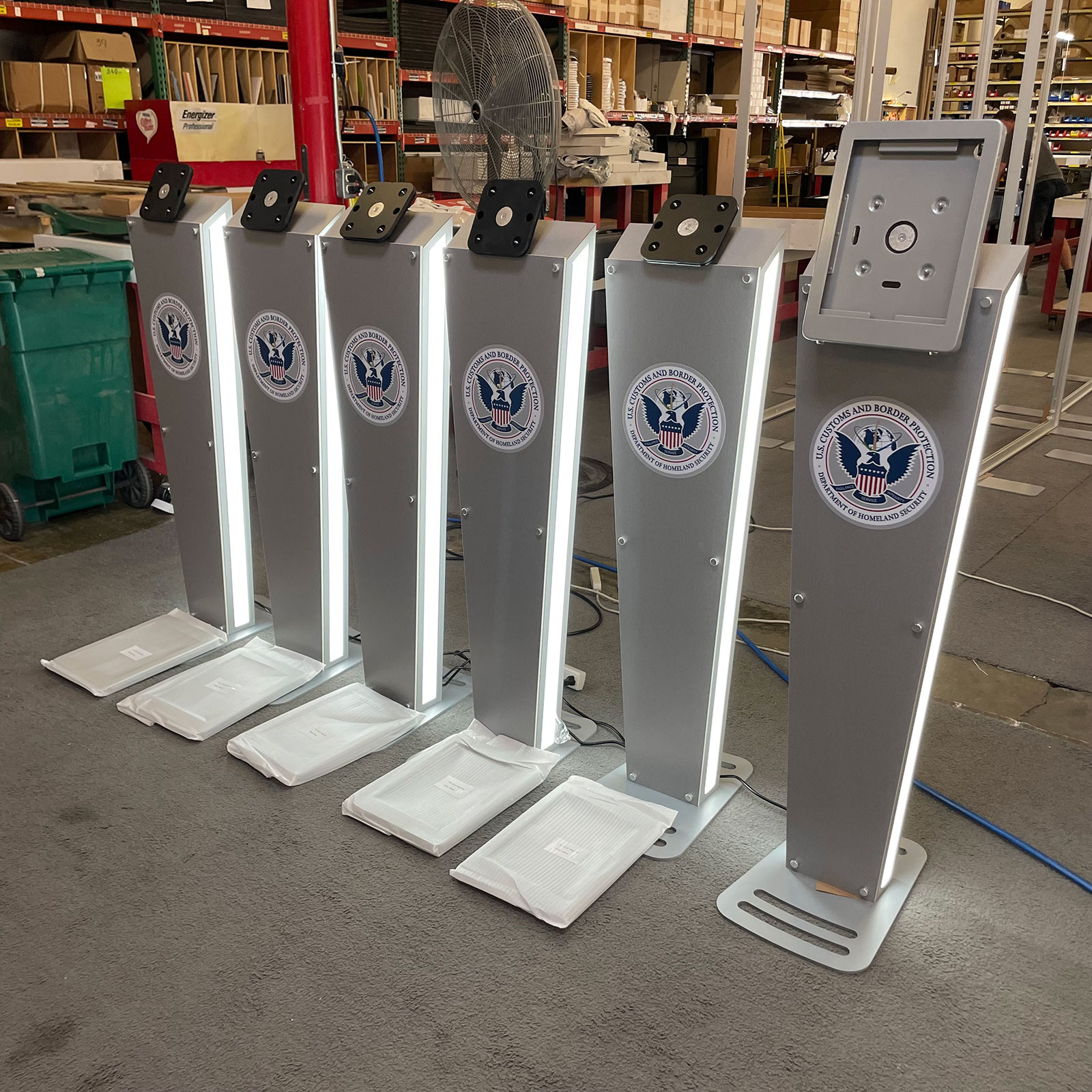 Kiosks with LED Lights, Locking Clamshell, and Tilt Mount