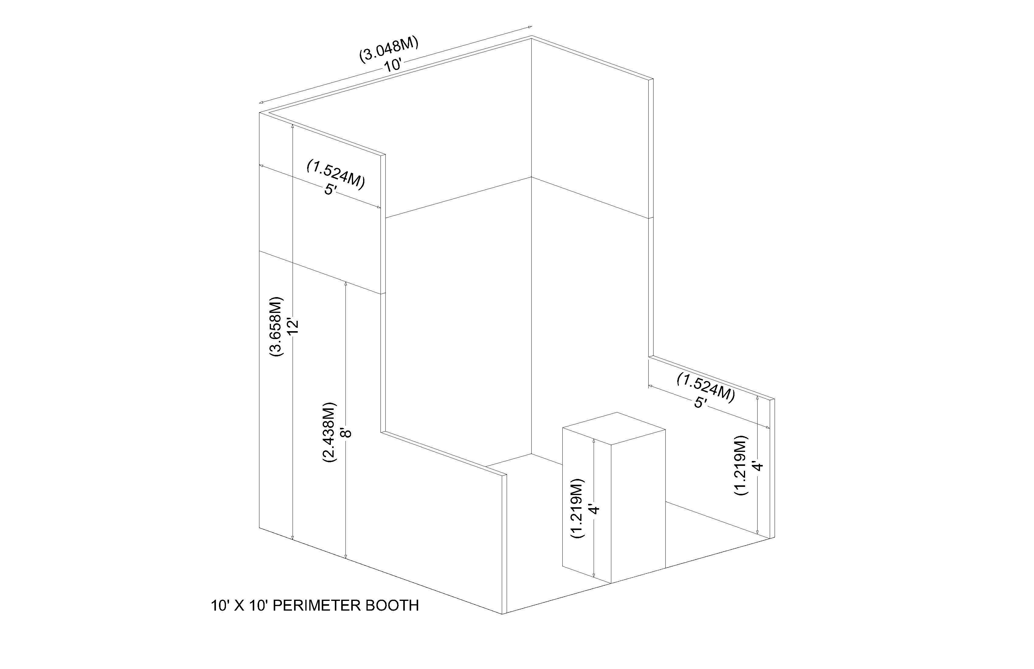 A corner booth is a linear booth exposed to the aisle on two sides. All other guidelines for linear booths apply.